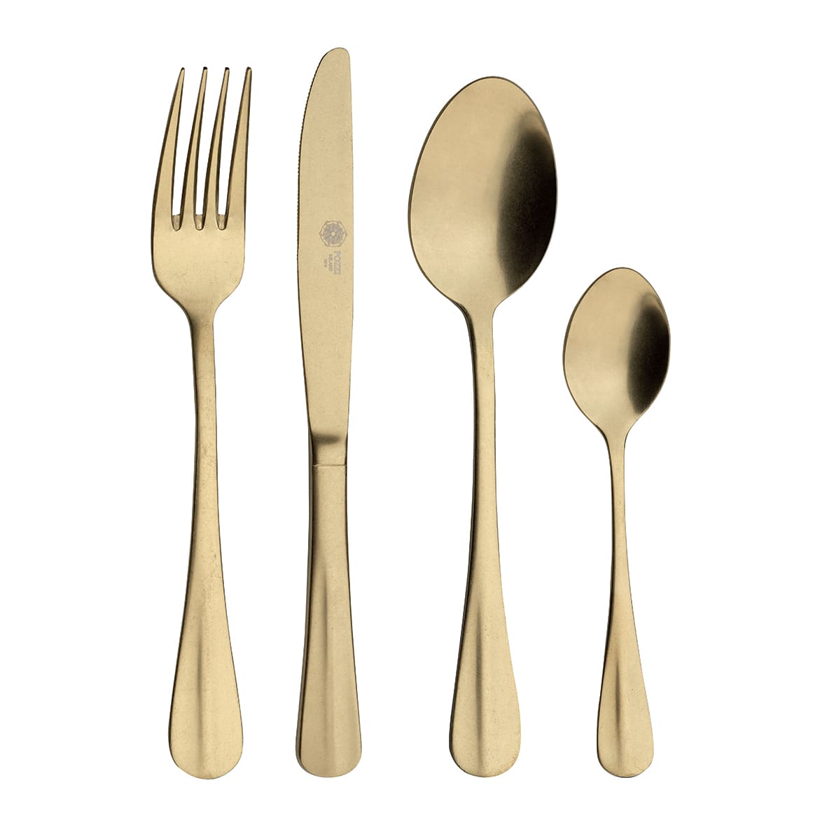 Le posate Pozzi Milano 1876, vendute in un’elegante gift box e realizzate in acciaio inossidabile color oro arricchito da un effetto stone wash, danno un tocco di eleganza e di ricercatezza alla tua mise en place, tanto nella vita quotidiana quanto nelle occasioni speciali.