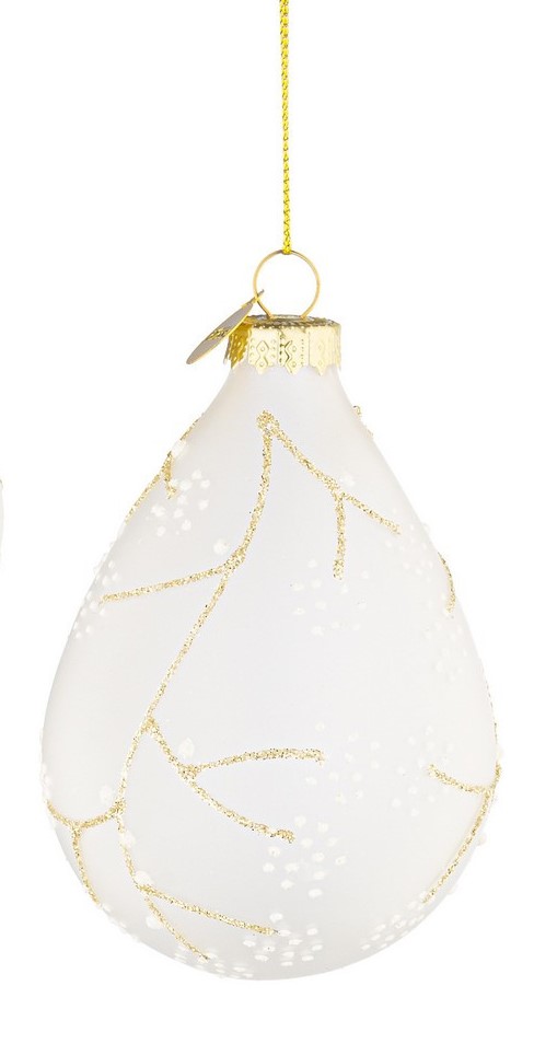 BIZZOTTO PALLA PENDAGLIO VETRO FLORAL BIANCO OPACO E ORO GOCCIA
