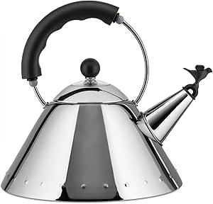 Il bollitore 9093 con fischietto a forma di uccellino è uno degli oggetti Alessi più venduti nel mondo. Il disegno di questo bollitore, creato da Michael Graves nel 1985, fonde influenze colte dell’Arte europea, del Pop americano e citazioni di culture precolombiane. A questo personalissimo linguaggio visivo di Graves si deve lo straordinario successo che il bollitore ha raccolto fin dall’anno della sua produzione. Un oggetto colto, ed elegante, ma al tempo stesso ludico e divertente: quando l’acqua bolle l’uccellino canta, strappando inevitabilmente un sorriso.