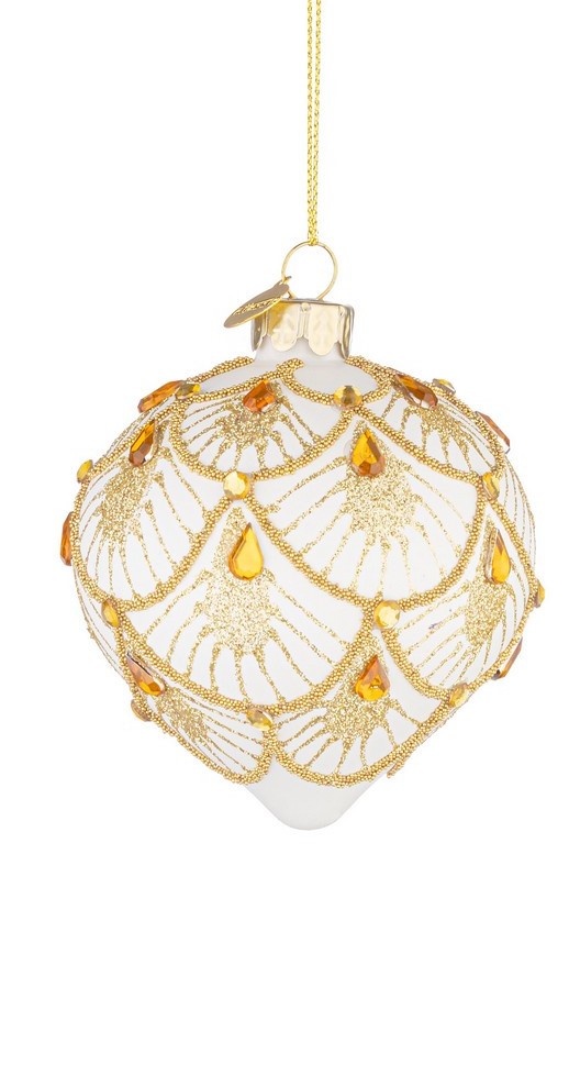 • BIZZOTTO PALLA  PENDAGLIO VETRO STARDUST BIANCO-ORO TROTTOLA