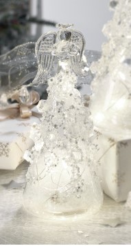 Angelo LED realizzato in vetro con splendidi brillantini, i suo LED creano un’atmosfera natalizia raffinata ed elegante, ideale anche come regalo