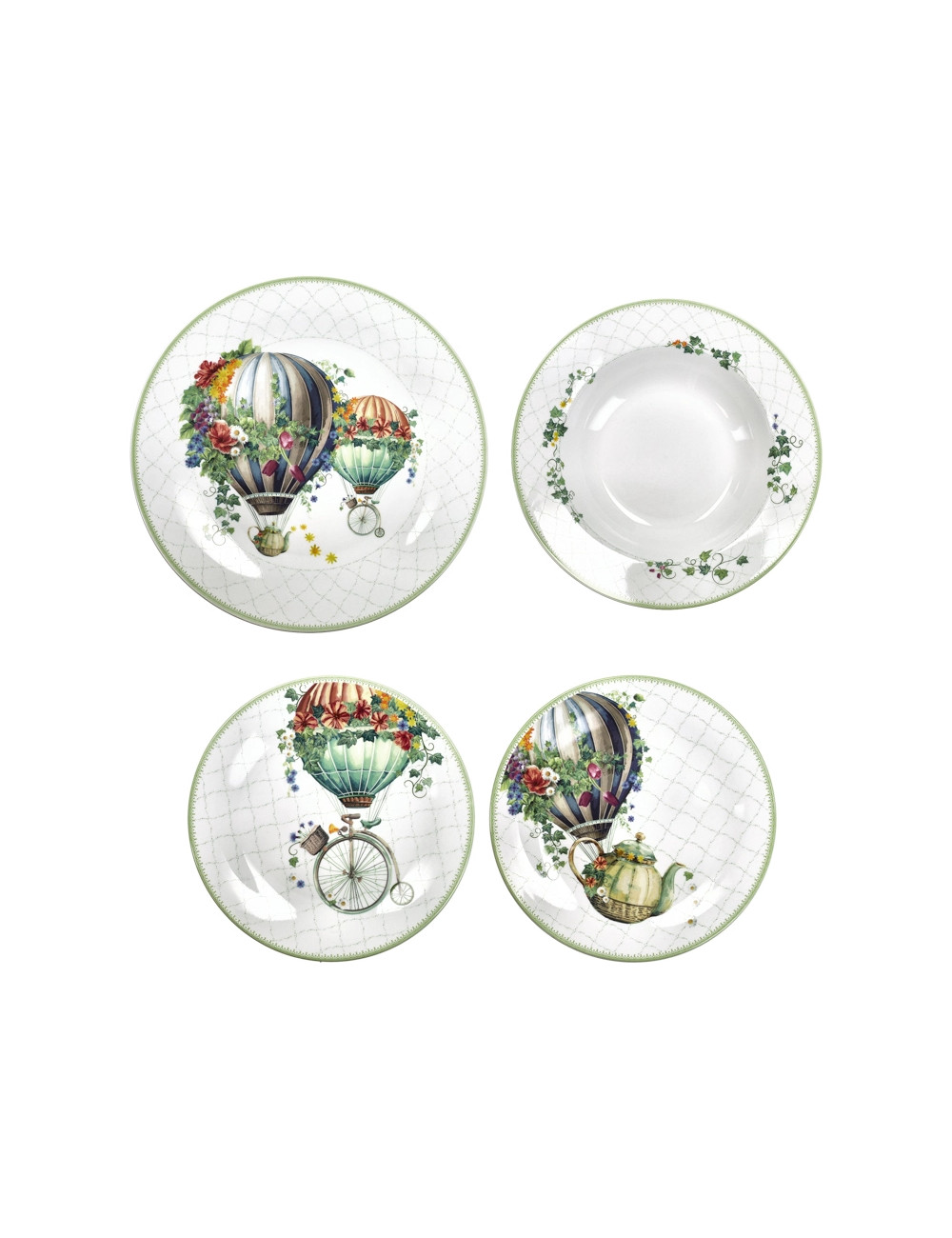 BRANDANI SERVIZIO PIATTI 18 PZ WONDERLAND MONGOLFIERE PORCELLANA