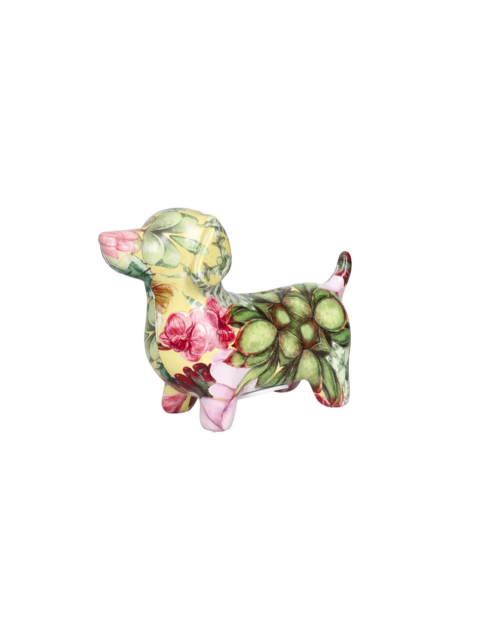 BRANDANI SALVADANAIO BASSOTTO FIORITO COLORE BIANCO/VERDE