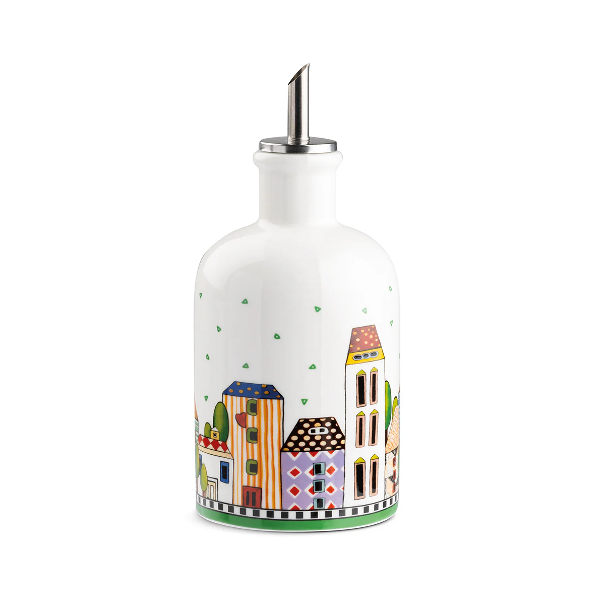 La bottiglia olio/aceto Paese Mio da 470 ml di EGAN è pratica e decorativa. In ceramica decorata, arricchisce la cucina con un tocco artistico ispirato ai borghi italiani.
