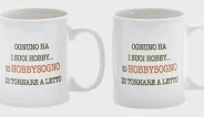 Per chi ama dormire ecco il set da 2 tazzine caffè in ceramica decorata con il claim Ognuno ha i suoi hobby... Io hobbysogno di tornare a letto.
