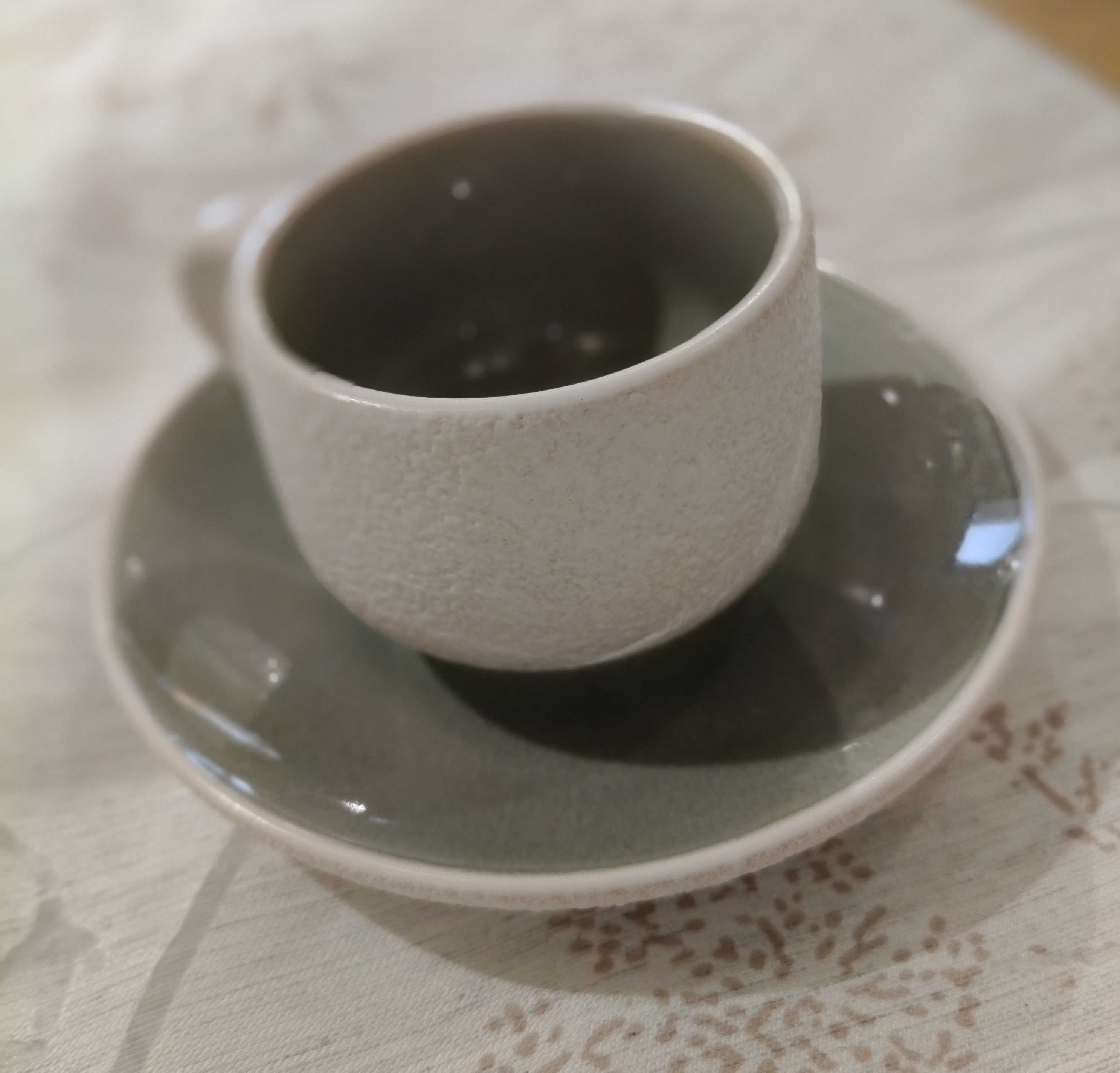 Servizio tazzine caffè Evviva Stones con piattino in stoneware di alta qualità interno colore VERDE ed esterno bianco effetto pietra.