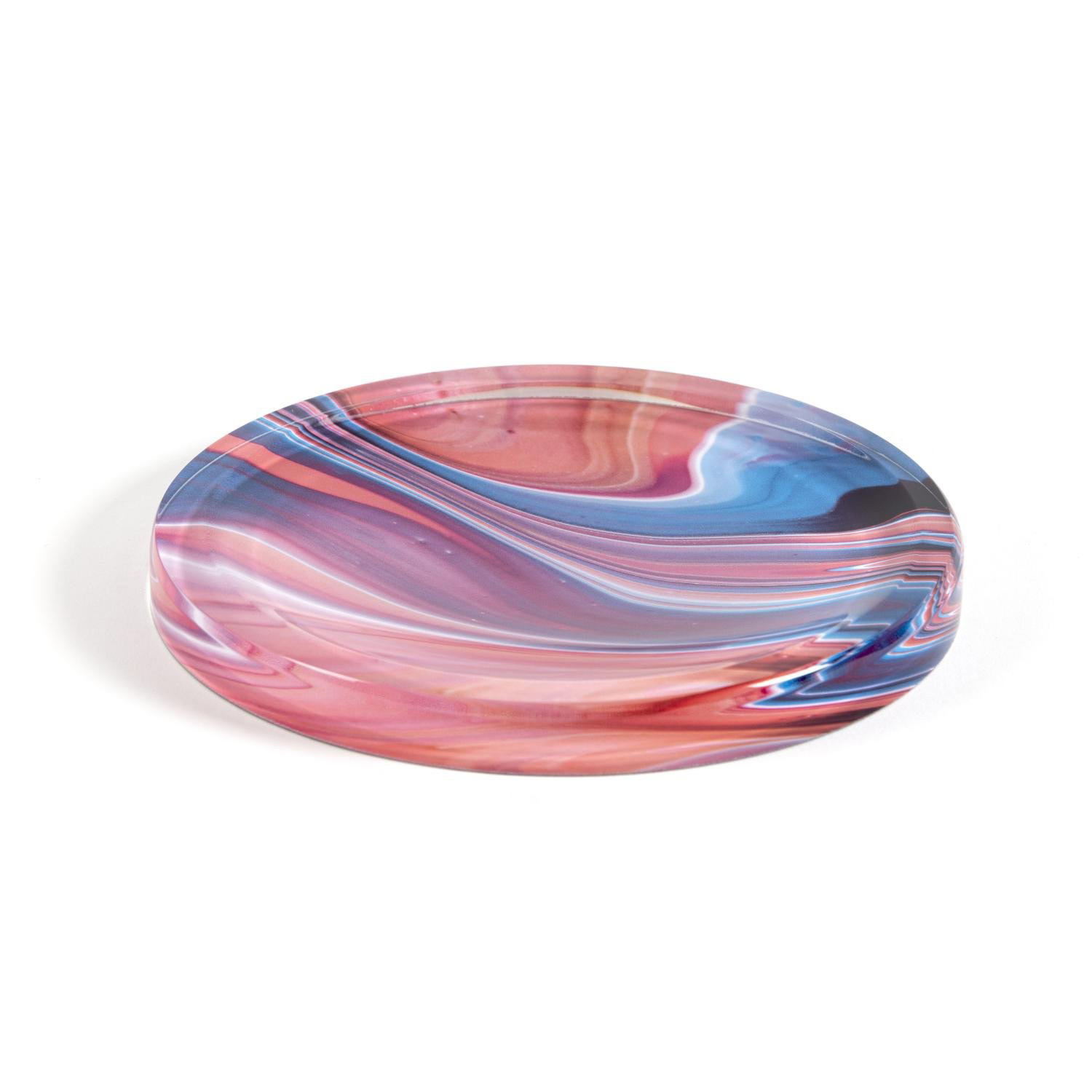 Vuotatasche in cristallo acrilico ricavato da un unico blocco. La forma e le grafiche stampate sul fondo danno all’oggetto uno straordinario senso di profondità. Abbinabile al fermacarte Stone.