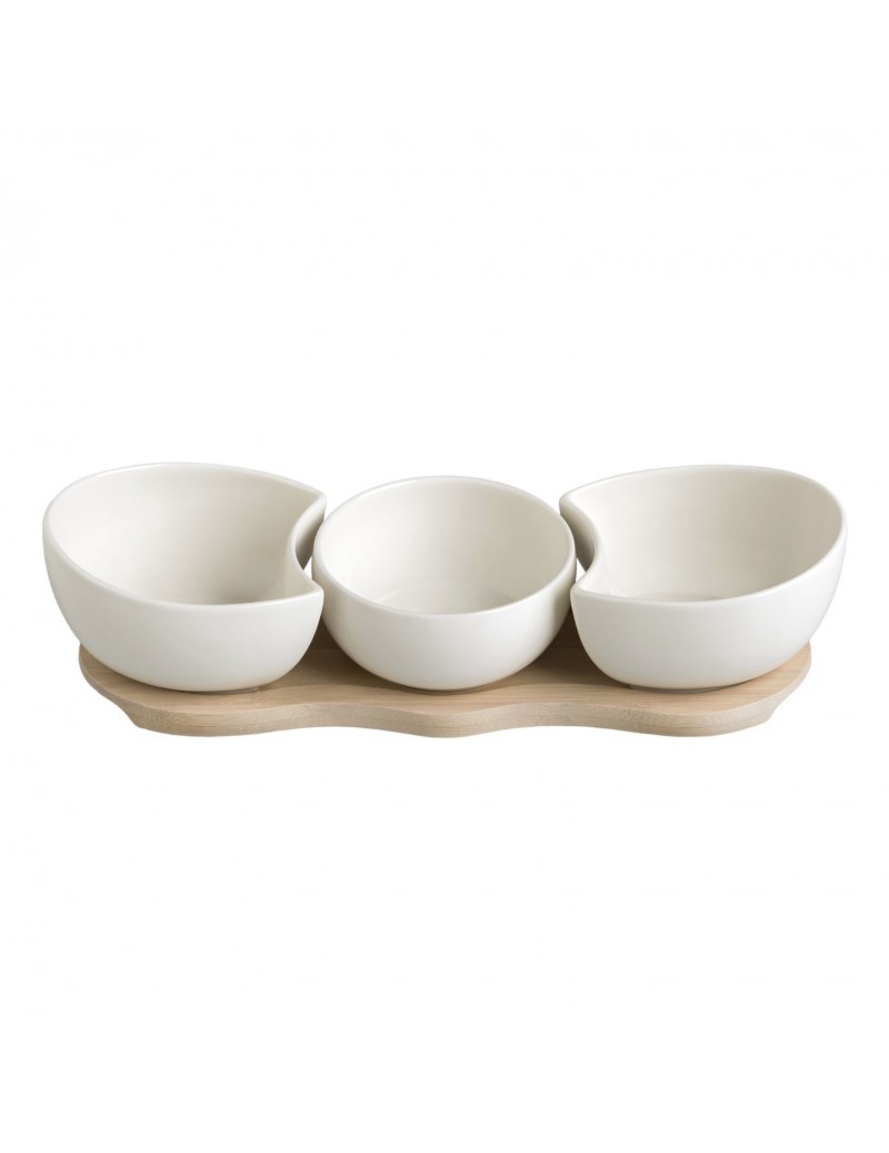ANTIPASTIERA PAPILLON IN PORCELLANA BIANCA CON SUPPORTO IN BAMBOO NATURALE BRANDANI