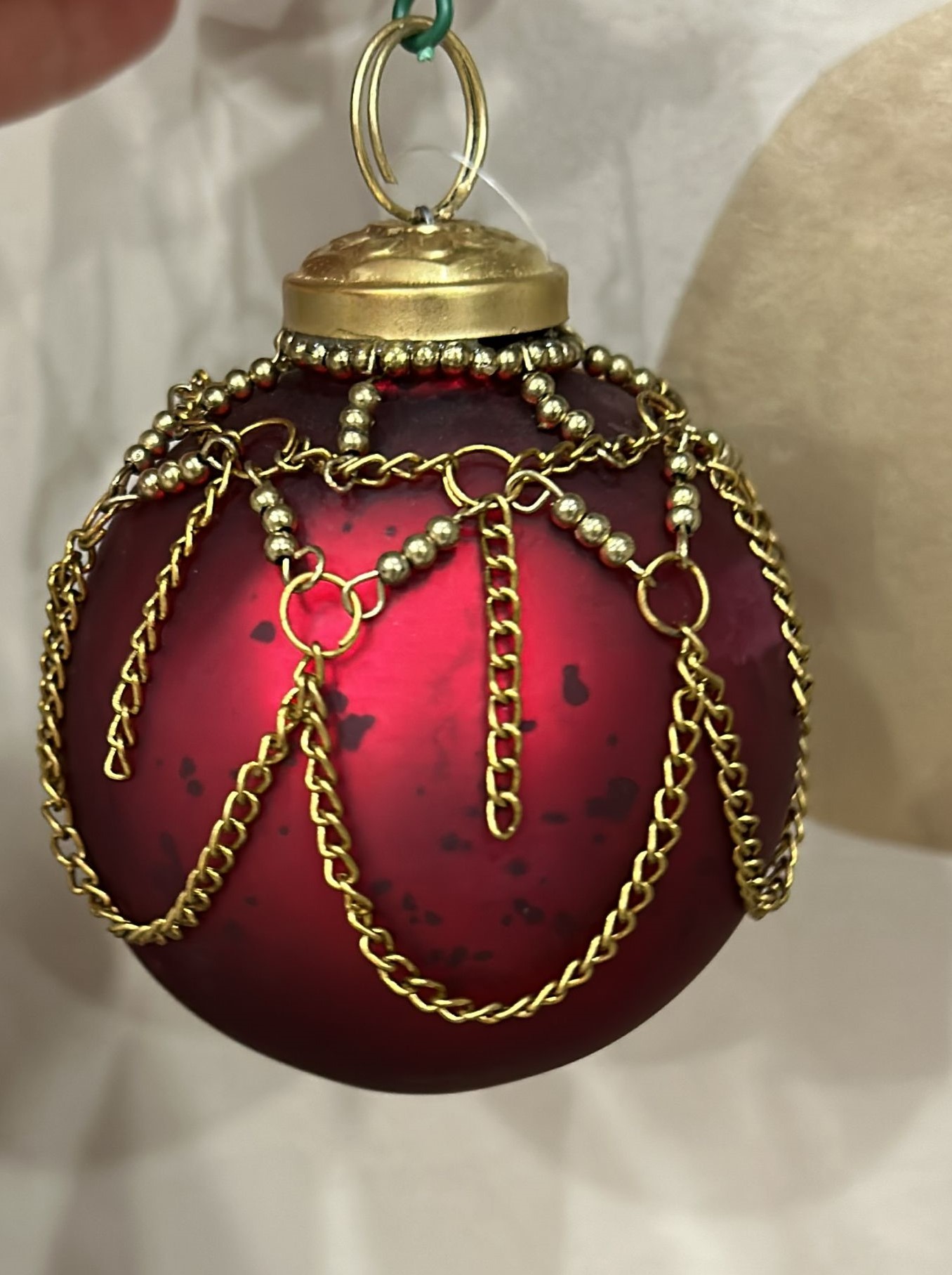 • BIZZOTTO PALLA  Sfera in vetro chain oro-rosso opaco, Ø8 cm